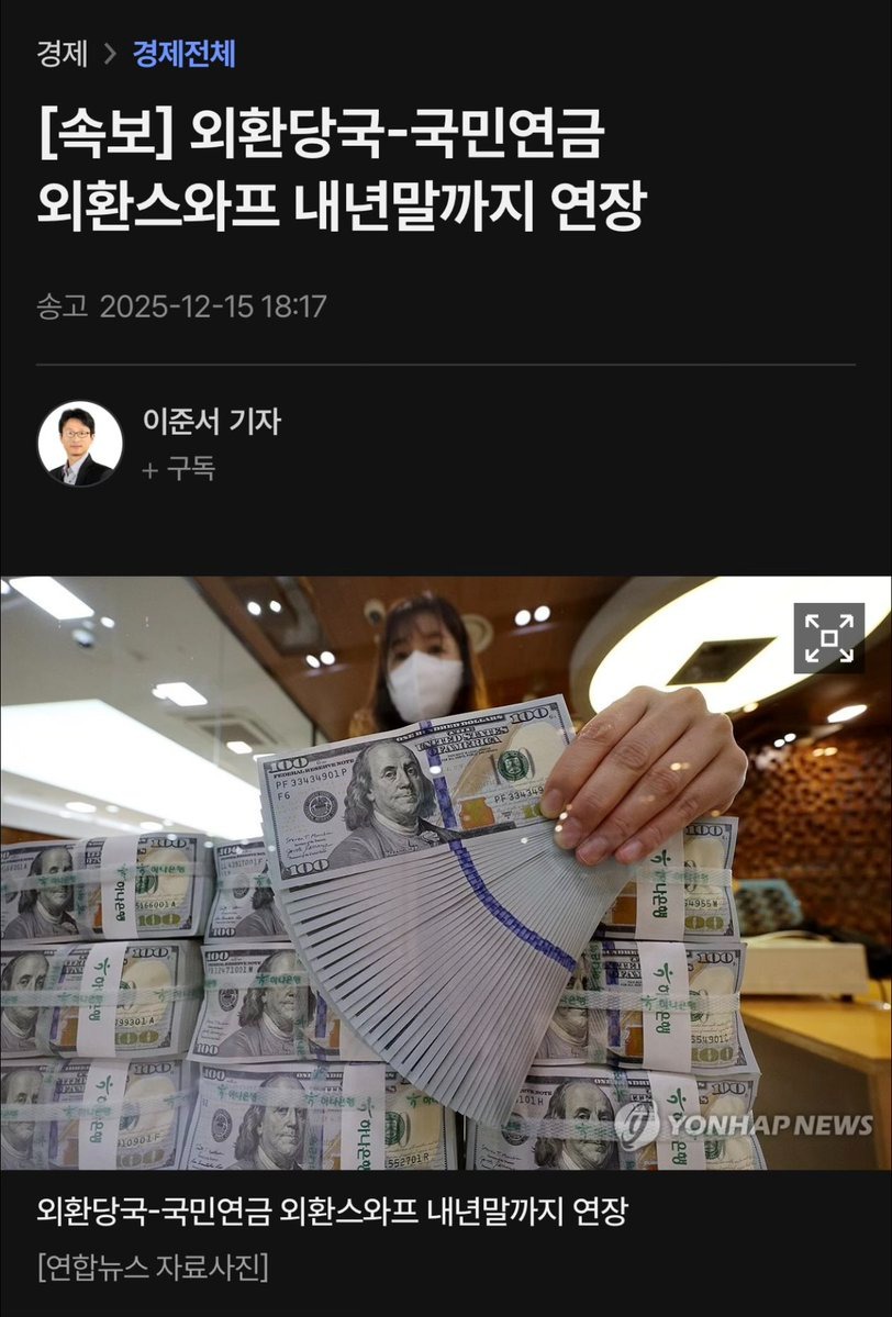 2025년 12월, 외환당국과 국민연금이 체결한 외환스와프 계약이 2026년 말까지 연장되면서